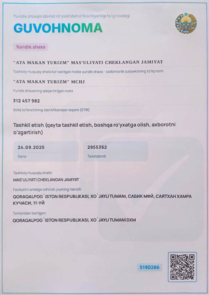 Bizning asosiy maqsadimiz – mijozlarimiz uchun qulay, xavfsiz va unutilmas sayohatlarni tashkil etish. Har bir safaringiz – yangi kashfiyot va yorqin xotiralar bo‘lishini kafolatlaymiz. Bizning jamoamiz tomonidan xorijiy davlatlarga hamda O’zbekiston bo’ylab sayohat qilish bo’yicha turistik marshrutlar sayohat dasturlari ishlab chiqilgan.